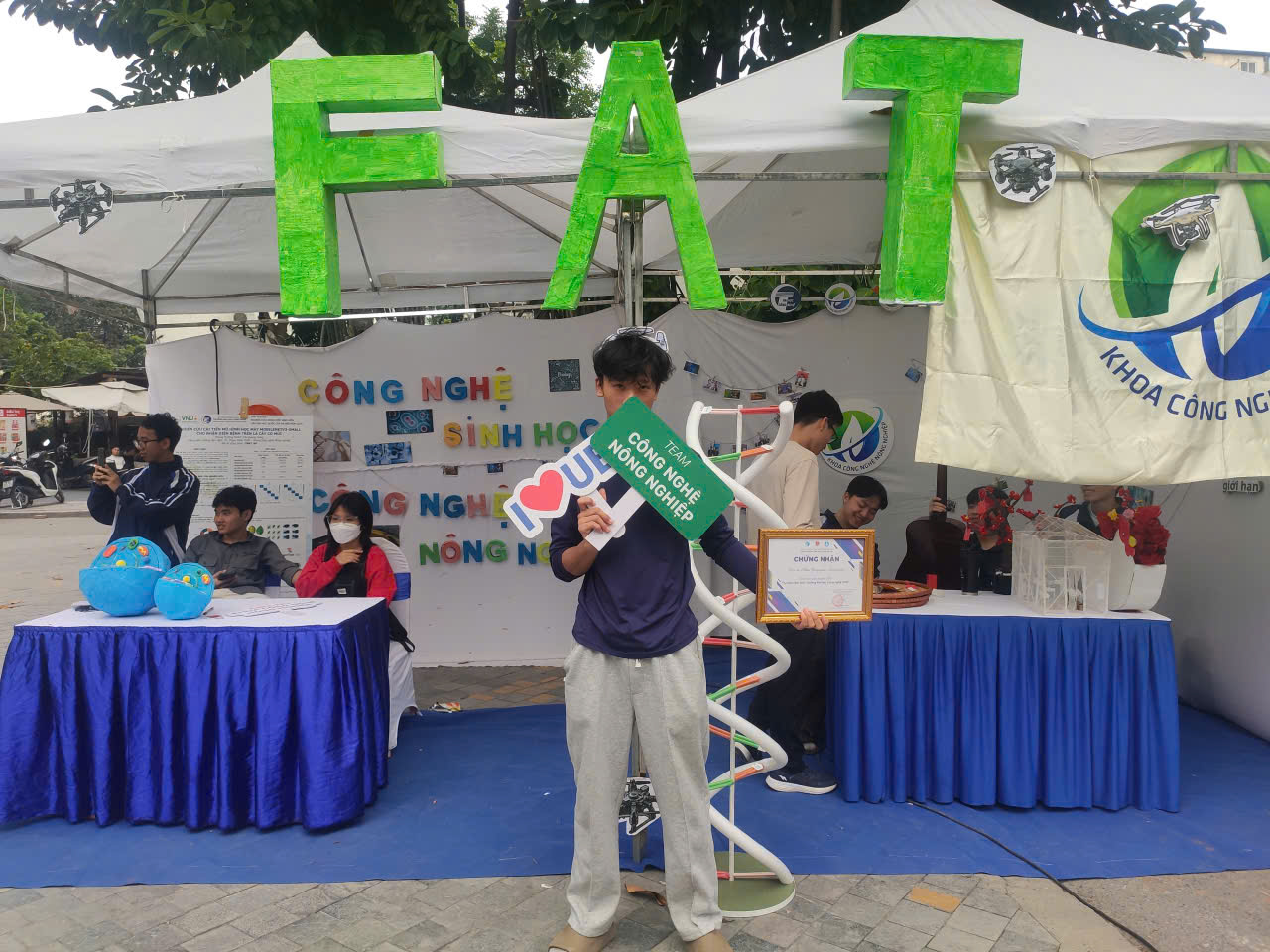 🌿 Những sản phẩm sáng tạo “made by AET students” – từ mô hình nông nghiệp thông minh, chế phẩm vi sinh, đến các sản phẩm ứng dụng công nghệ sinh học – đã thu hút đông đảo sinh viên và giảng viên ghé thăm. Mỗi sản phẩm là một câu chuyện nhỏ về đam mê, về những ngày miệt mài nghiên cứu trong phòng thí nghiệm, về giấc mơ biến tri thức thành ứng dụng phục vụ đời sống.
