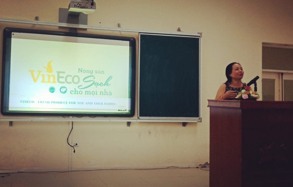 TS. Phạm Mỹ Linh – Giám đốc sản xuất Công ty TNHH Đầu tư Phát triển Sản xuất Nông nghiệp VinEco khu vực miền Bắc có đôi lời giới thiệu về đơn vị và chia sẻ với sinh viên.