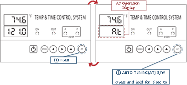 6) Auto Tuning(AT) AT is recommended under 2 cases. case1. When the change of current temp is fluctuating more than ±0.1℃. case2. When the unit can not reach at the set temp.