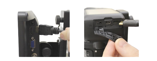1. Kết nối máy ảnh với màn hình bằng cách cắm cáp HDMI vào