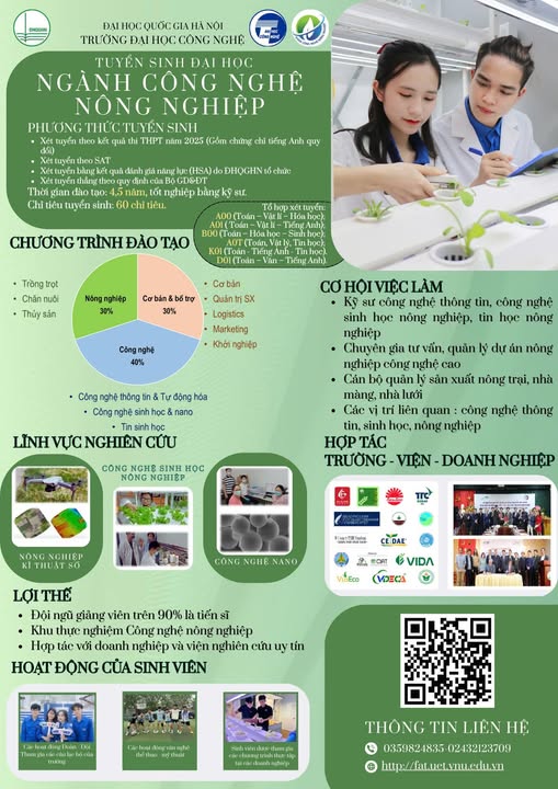 📍 Ngành Công nghệ Nông nghiệp và Công nghệ Sinh học – Khoa Công nghệ Nông nghiệp, Trường Đại học Công nghệ (UET – VNU)