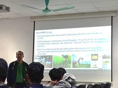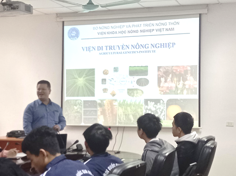 Trước khi đi thăm quan cơ sở nghiên cứu sinh viên được nghe cán bộ của Viện Di truyền Nông nghiệp, Trung tâm Nông nghiệp nhiệt đới quốc tế CIAT và Viện nghiên cứu lúa quốc tế IRRI giới thiệu về lịch sử hình thành, quy mô, cũng như các hướng nghiên cứu của các đơn vị.