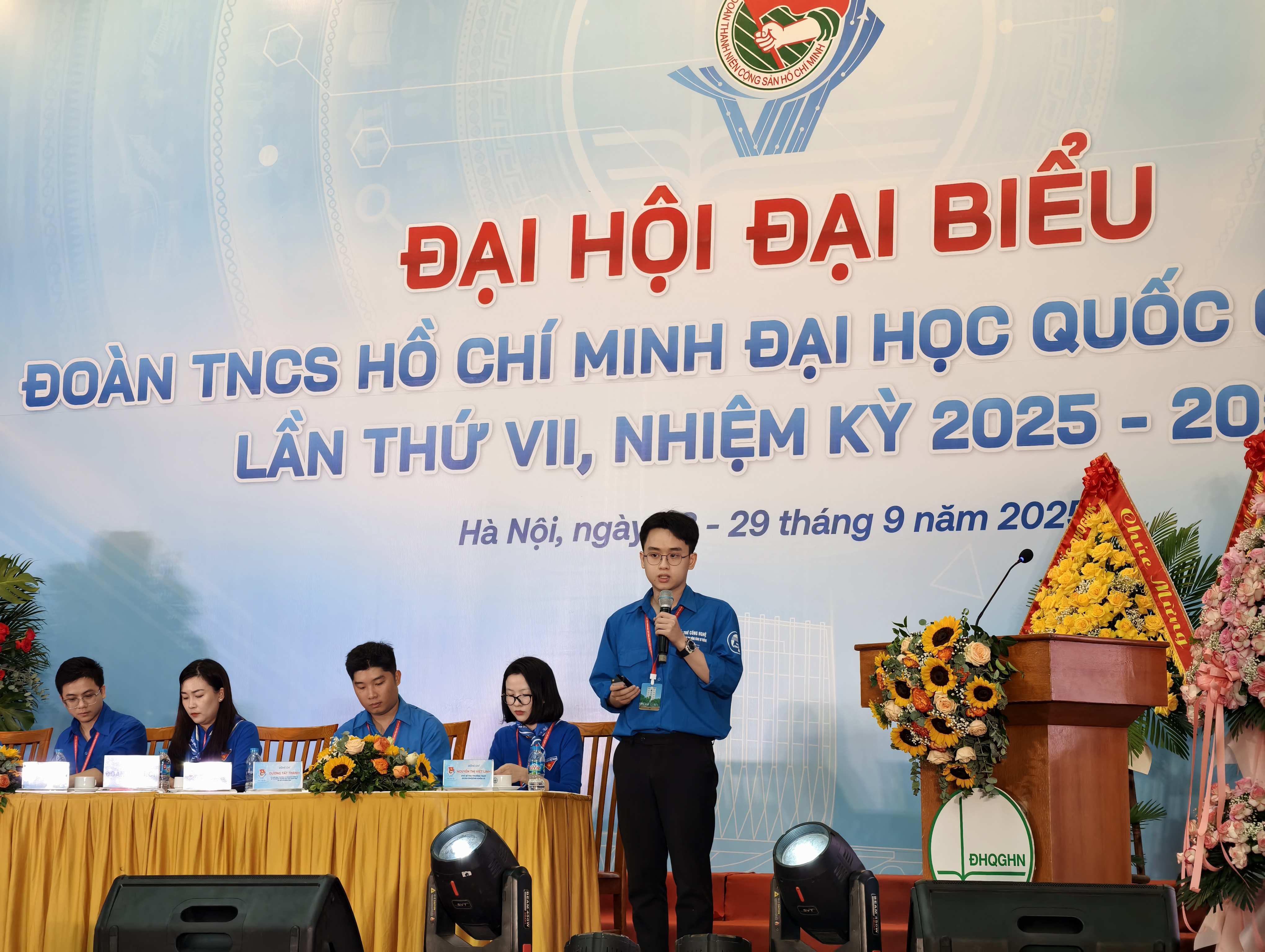 Trong khuôn khổ Đại hội Đại biểu Đoàn TNCS Hồ Chí Minh Đại học Quốc gia Hà Nội lần thứ VII, nhiệm kỳ 2025 – 2030, sinh viên Lê Hoàng Vũ – gương mặt tiêu biểu của Khoa Công nghệ Nông nghiệp, Trường Đại học Công nghệ đã vinh dự đại diện tuổi trẻ nhà trường tham gia trình bày tham luận quan trọng với chủ đề: