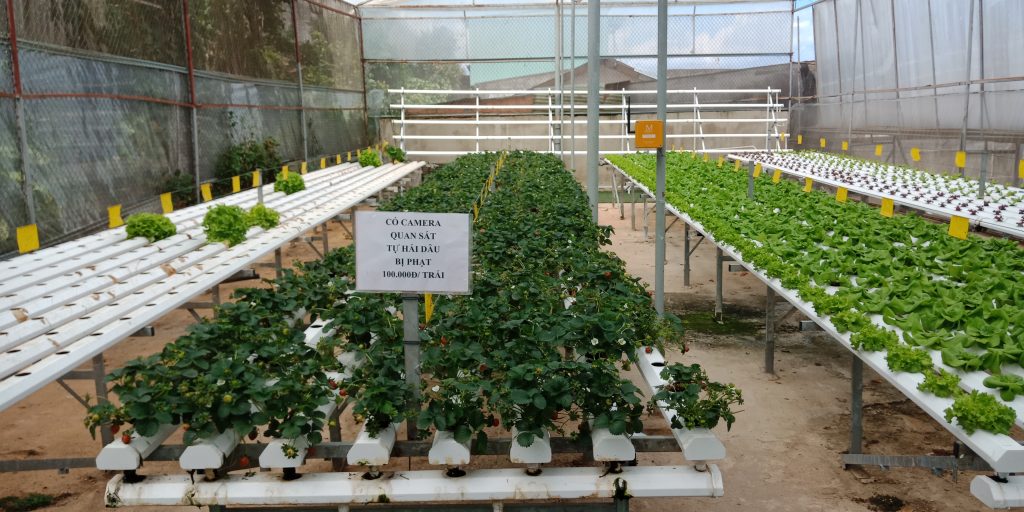 Những loại cây trồng ở đây gồm cà chua bi, xà lách, dâu tây, lan hồ điệp, lan vũ nữ… Khách đến uống cà phê có thể dời chỗ ngồi của mình, đi vài bước là vào vườn, tha hồ xem tận mắt cảnh công nhân chăm sóc từng cây cà chua, chậu lan hồ điệp hay giàn dâu tây, xà lách trồng thủy canh. Ông Đường cho hay, những mô hình sản xuất NNCNC có rất nhiều ở Lâm Đồng. Nhưng muốn tới xem trực tiếp, du khách và người dân TP Đà Lạt phải đi xa. Vì thế, Green Box đã đáp ứng được nhu cầu muốn tham quan những mô hình sản xuất.
