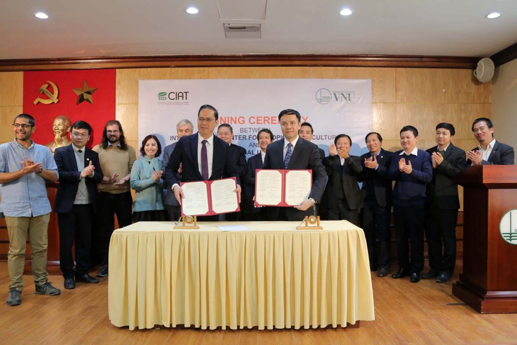 Ngày 22/01, Giám đốc ĐHQGHN Nguyễn Kim Sơn và Tổng Giám đốc Trung tâm Nông nghiệp nhiệt đới quốc tế (CIAT) Ruben Echeverria đã ký kết văn bản thỏa thuận hợp tác giữa hai bên. Trong đó, Trường Đại học Công nghệ cũng thực hiện ký kết hợp tác với Trung tâm Nông nghiệp nhiệt đới quốc tế về lĩnh vực nông nghiệp công nghệ cao.